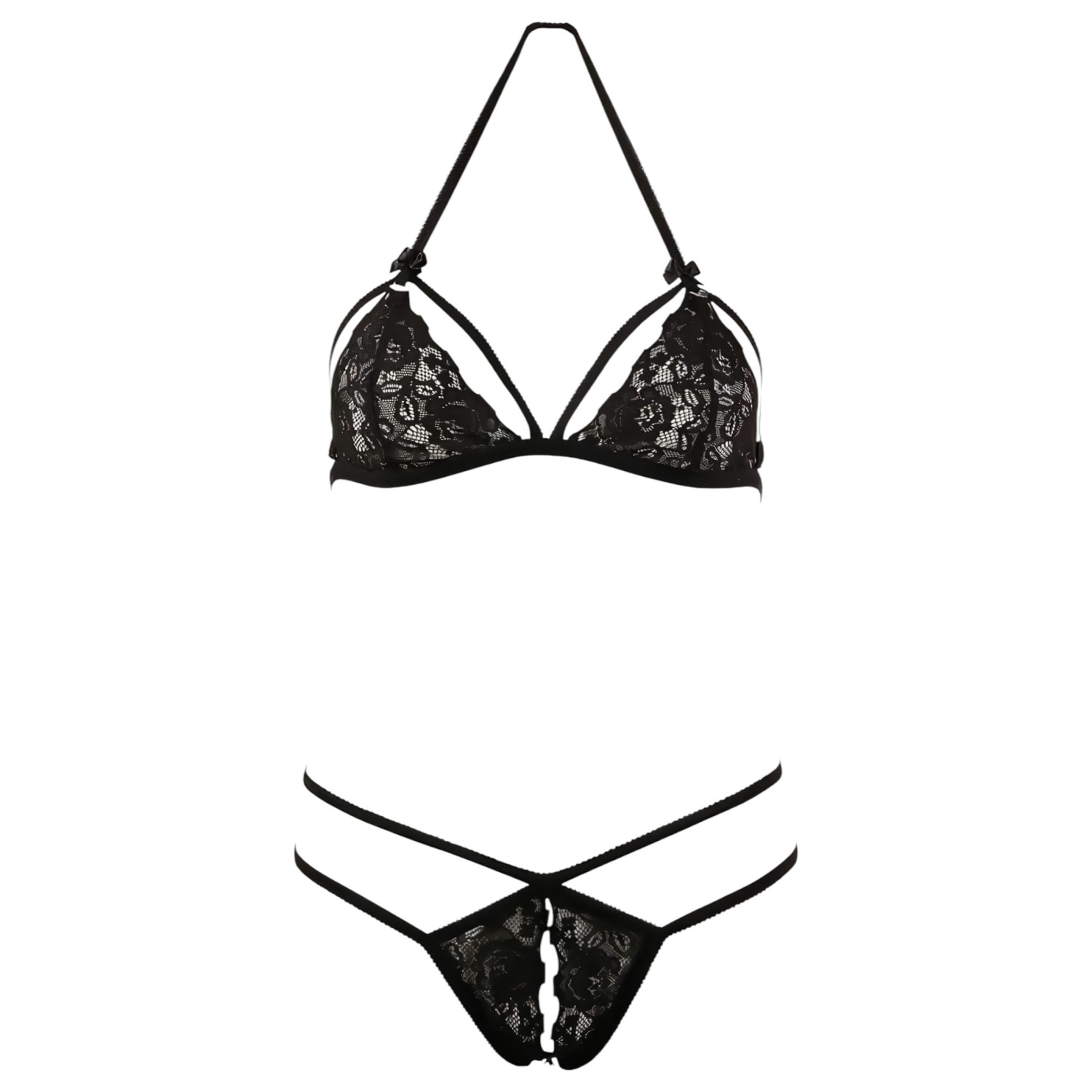 Cottelli - Avoin pitsisetti (musta) - XL