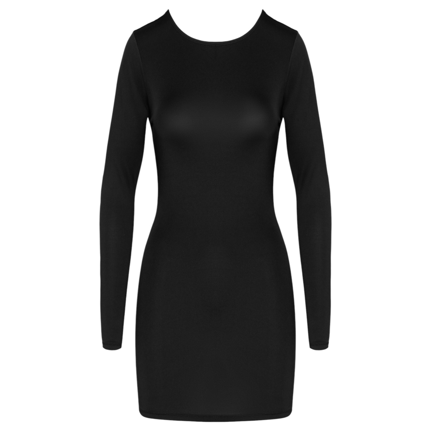 Cottelli Party musta, pitkähihainen minimekko on samaan aikaan elegantti ja provosoiva - edestä pelkistetty, takaa todella henkeäsalpaava.