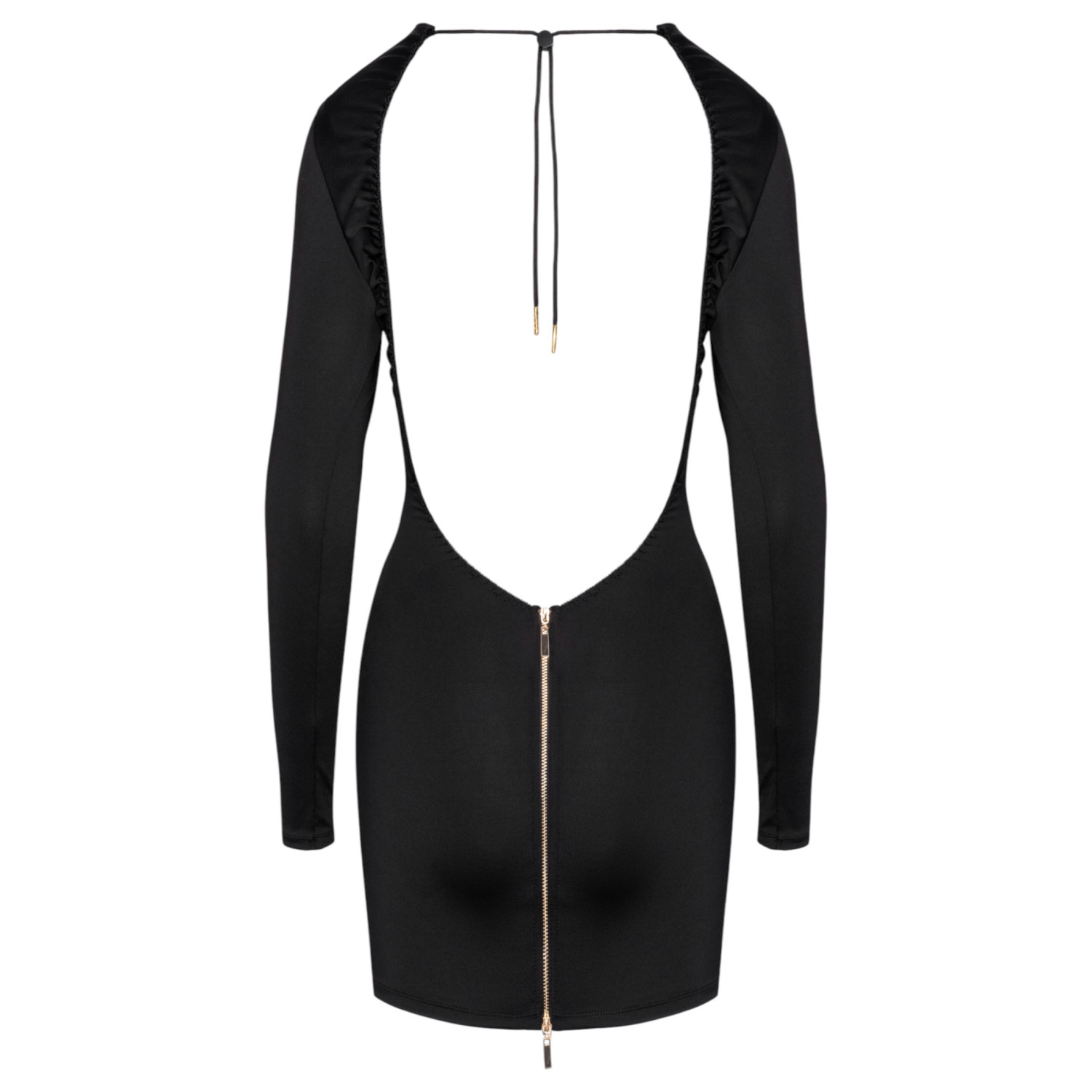 Tämä mekko on täydellinen valinta, jos haluat elegantin ilmeen, joka on silti rohkean houkutteleva. Edestä hillitty, mutta takaa syvä leikkaus ja kultainen vetoketju luovat vaikutelman, joka takuuvarmasti kiinnittää katseet. Joustava materiaali tekee siitä paitsi näyttävän, myös mukavan.